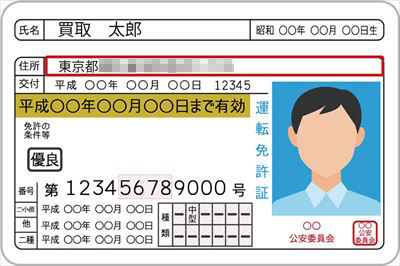 ※お申込みの住所と身分証の住所が相違の場合は古物営業法の観念からお買取りできません。